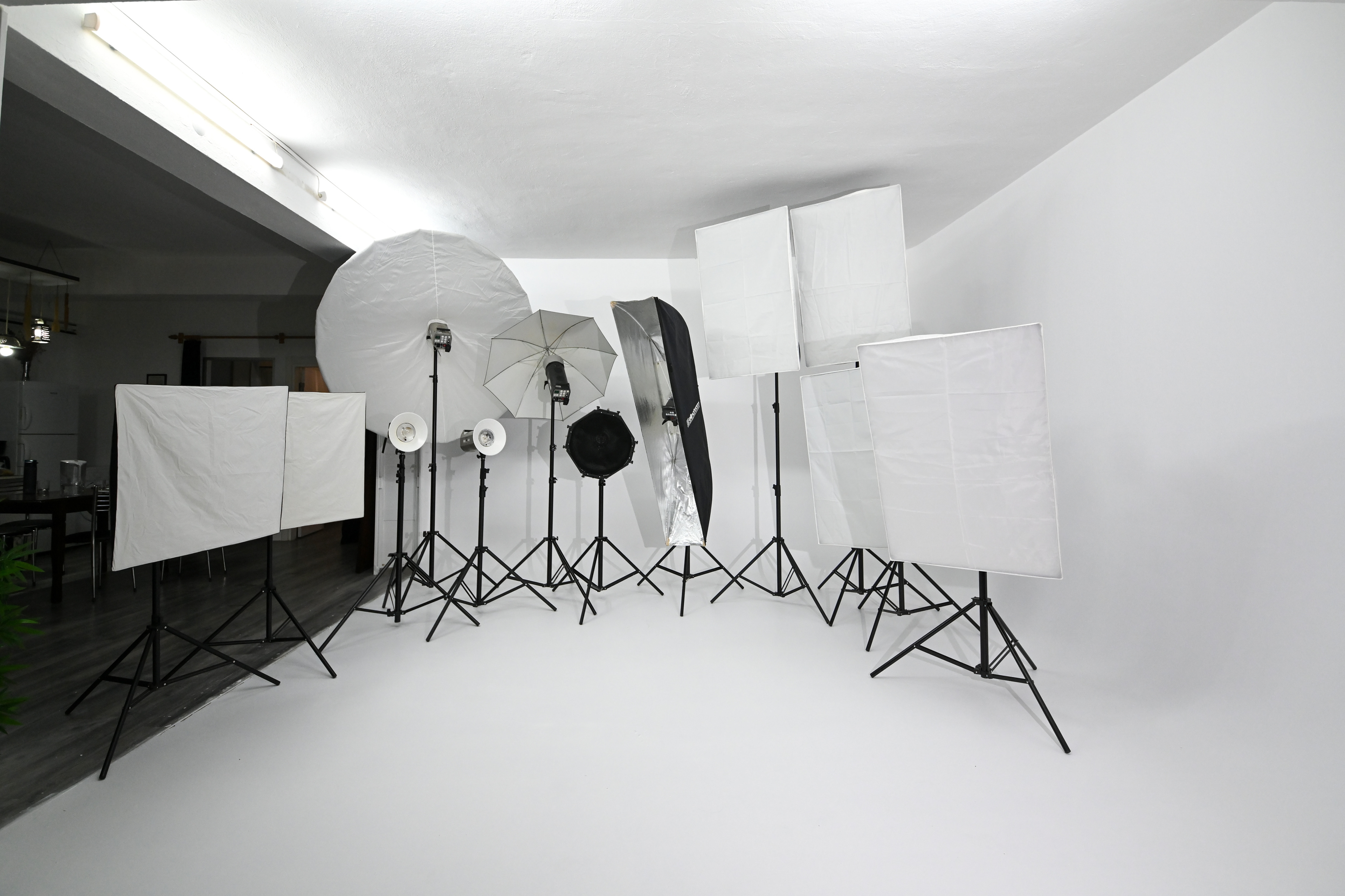 Stüdyomuzda, Elinchrom marka paraflaşlar ve Godox marka sinema ışıkları kullanmaktayız.